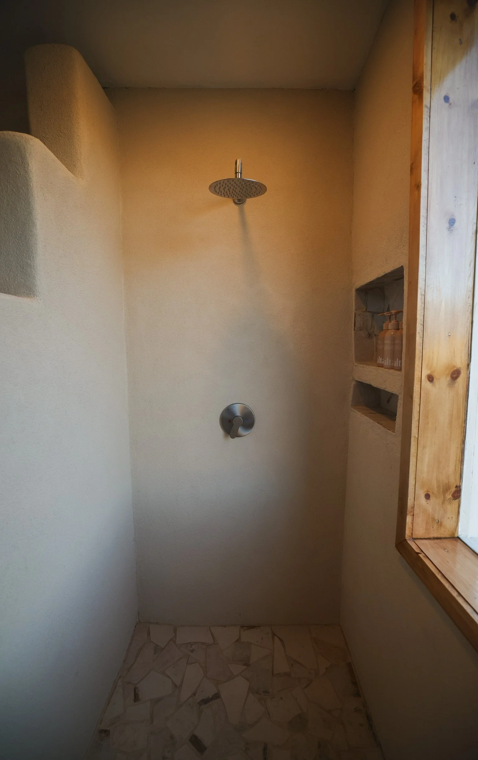 The eco-friendly bath house lies a few steps from the bedroom. Enjoy a warm shower thanks to bountiful summer monsoons, as we operate off rainwater catchment. All grey water will return to the earth, nourishing our native landscaping.